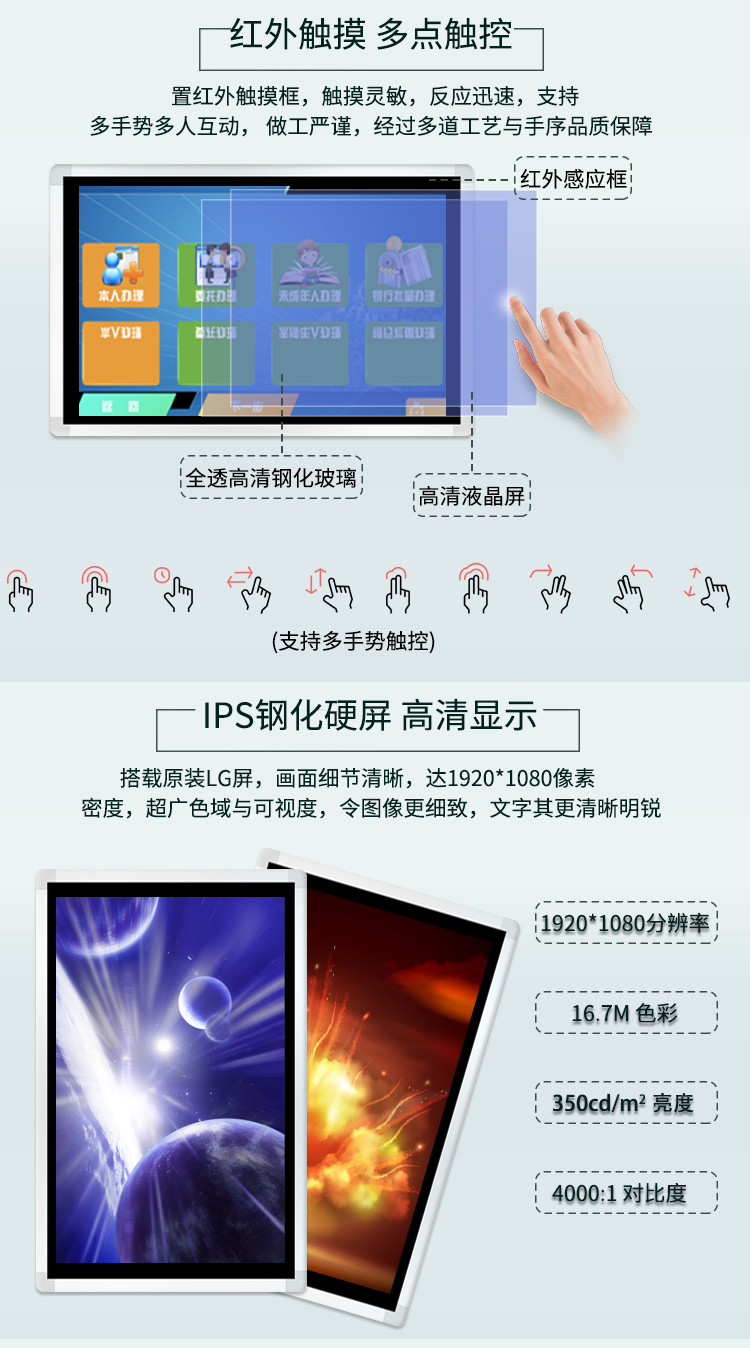 6點紅外觸摸,支持多點手勢; |