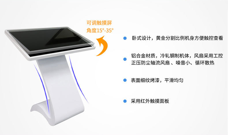 (1)紅外觸控結構,人體工程學設計,纖巧美觀、流線造型、典雅大方、現(xiàn)代感強,界面友好、汽車烤漆,工藝精良、顏色可選;