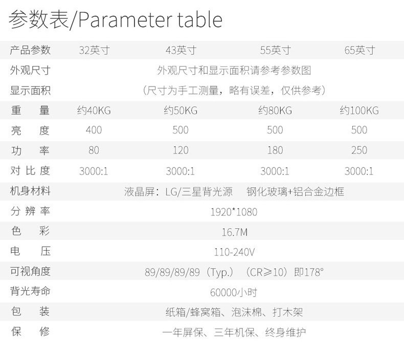 鋁合金邊框,鈑金后殼,標配壁掛架,可選配獨立設計的底座 |