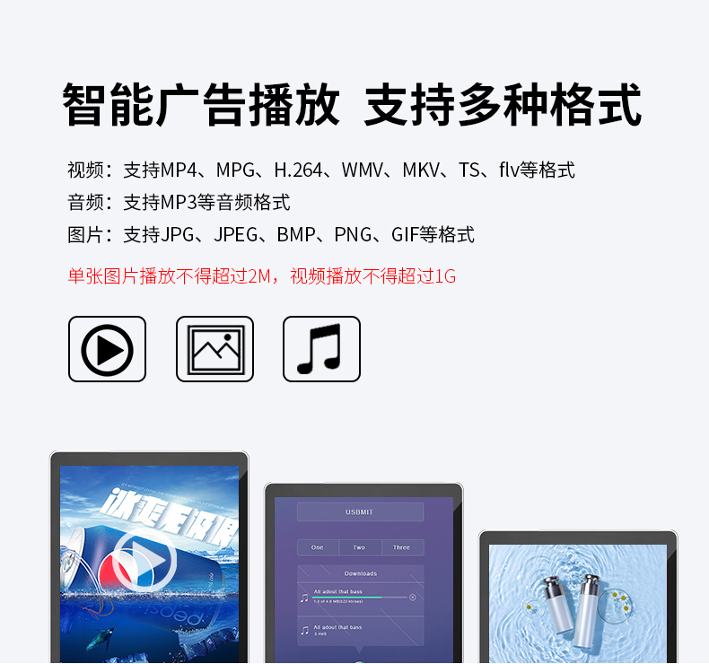 通過網(wǎng)絡(luò)接收媒體內(nèi)容,存貯于本地后循環(huán)播放、插播、定時(shí)播放、墊片播放等 |