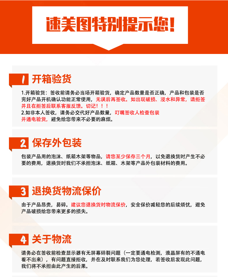 2、三個(gè)月包換:自產(chǎn)品驗(yàn)收日起三個(gè)月內(nèi),產(chǎn)品自身存在質(zhì)量問題,用戶可以選擇修理或換貨。用戶更換故障機(jī)器須保證包裝完好,機(jī)器外觀與保修卡標(biāo)簽無損,無故障情況不包換。